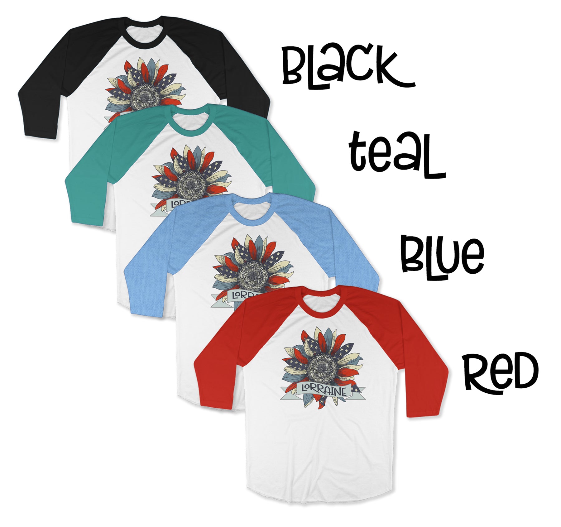 Customise It | Raglan Long Sleeve Shirt | American Flag Sunflower
