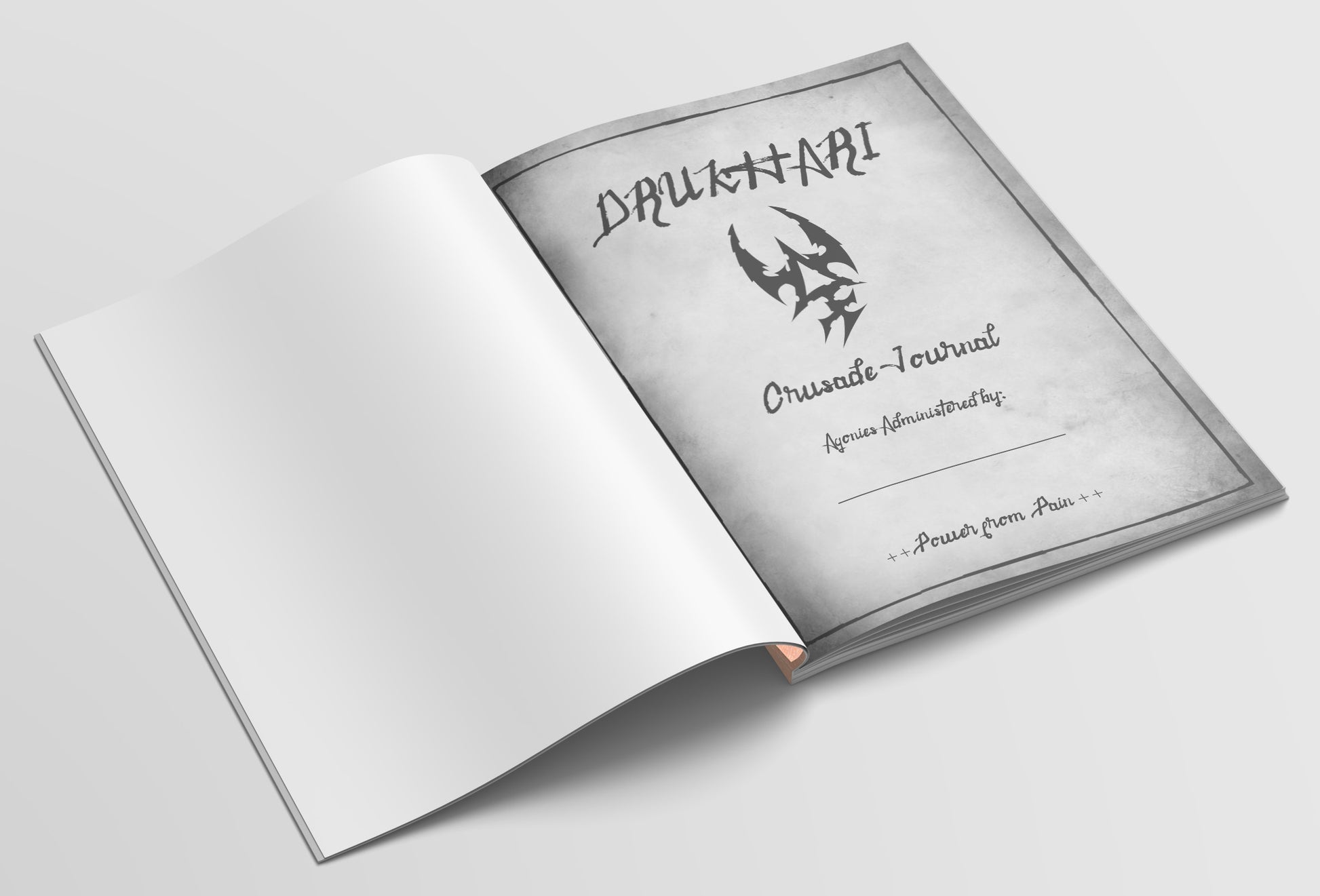 Find your salvation from the Dark Prince by carving your freedom into the chattel races of the galaxy. Their flesh is soft and malleable, but their skins make for excellent pages. Record your most torturous raids and decadent pleasures in this skin boo- crusade journal.