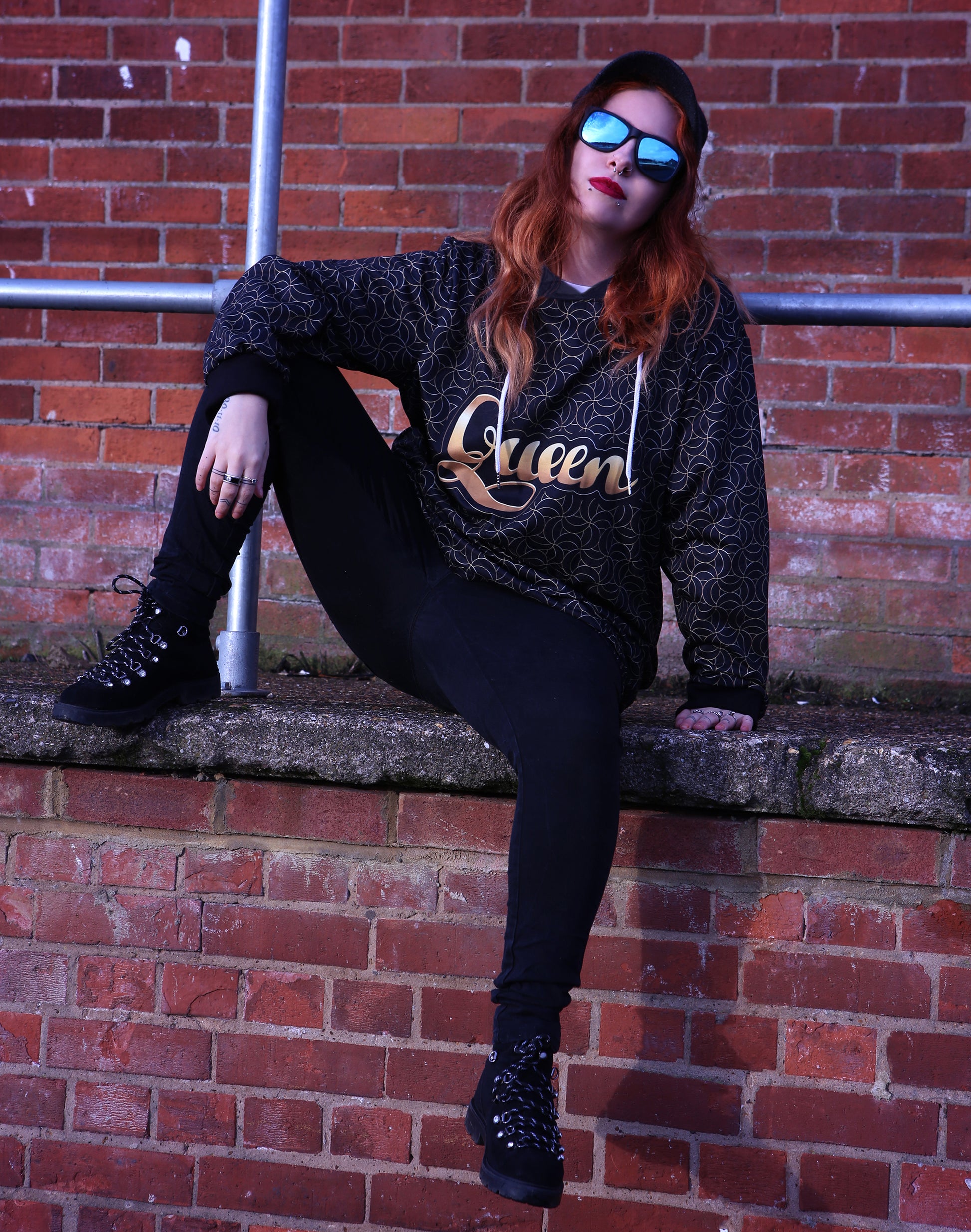 Exclusively designed Queen Hooded Mini Dress with set in pockets.