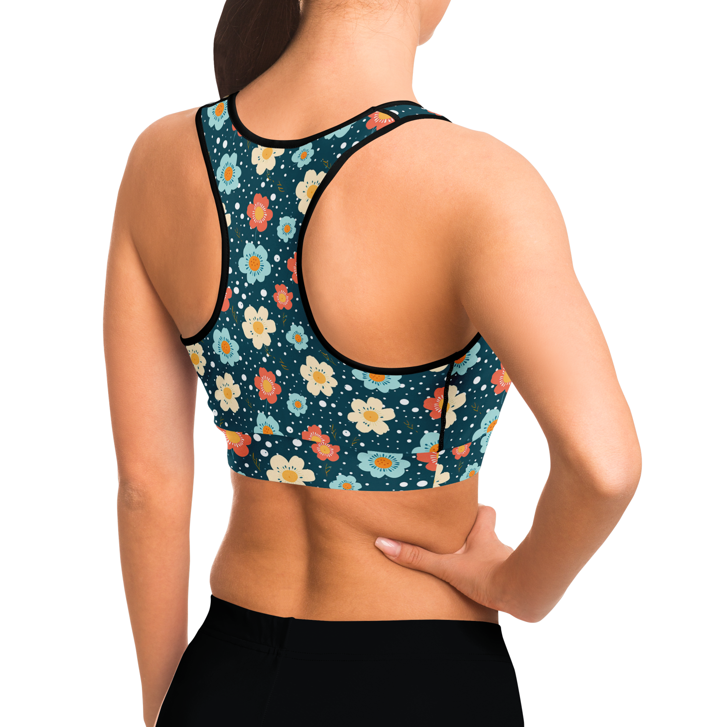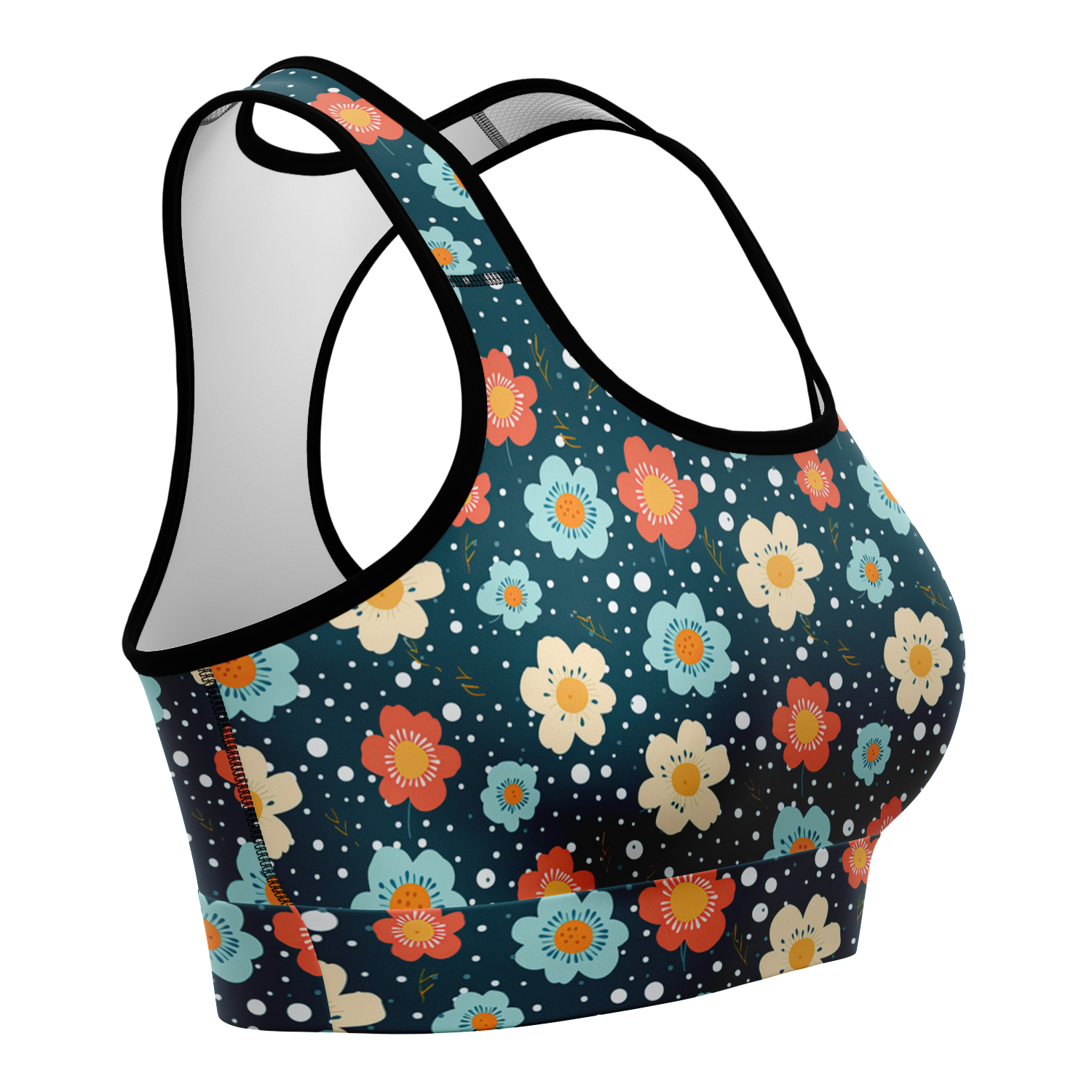 This cut & sew sports bra will be your new best friend in the gym, at yoga, or an outdoor adventure. Made from a premium moisture-wicking material that stays dry during low and medium intensity workouts. Designed to be light weight and comfortable. With a double layer front, support in the shoulder straps and a wide elastic band to ensure constant support.